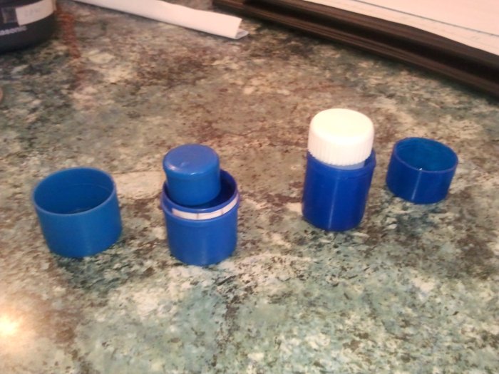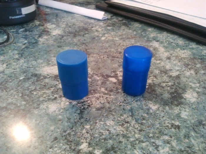 A két kék tartály különböző belső tartalmat rejt. Bár külsőleg nagyon hasonlítanak egymásra, ez csak a látszat. Az egyikben orvosi pecsét rejtőzik, 15-20 évvel ezelőtt ilyen tartóban adták a végzős orvosok kezébe. A másikban pedig mintavételi eszköz található, mellyel a székletből lehet kis darabot venni, azért, hogy a laboratóriumban megvizsgálják.