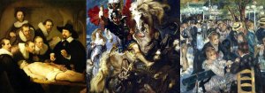 Rembrandt: Tulpius doktor anatómiája; Rubens: Sárkányölő Szent György; Renoir: Bál a Moulin de la Galetten egészben a Google képkeresőjében pillanatok alatt fellelhető. Bocsánatot kérek a képek megvágásáért a művészektől és a kedves olvasótól.