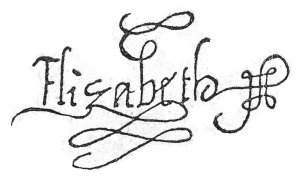 I. Erzsébet angol királynő vagy kétszáz évvel megelőzte Katalint és Napóleont. Az 1500-as évek végén járunk. Nemcsoda, hogy szögletesek a betűk és egy kis királyi ciráda is rákerült: