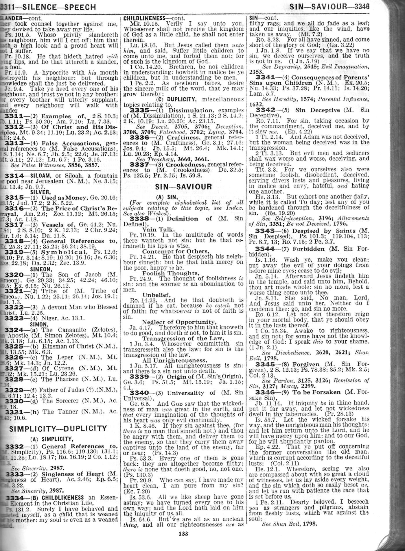 A referenciák lényege, hogy a biblia-versek, igehelyek olvasásakor, a margón látjuk azt a kulcsszót és hivatkozási számot, ami alapján a Biblia hátsó részében megkereshetjük az adott témát. Ott találjuk a biblia-versek láncolatát kiírva. Vagyis, egyszerre elolvashatjuk, hogy mit mond a Szentírás az adott témáról. Nem mást, mint Isten gondolatait, sőt gondolkodásmódját olvashatjuk össze.