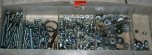 19. A csavarokat, anyákat, alátéteket érdemes sortírozni valamilyen szinten. Sok időt és bosszúságot tudunk megspórolni, ha egyszer rendet teszünk köztük. Annál idegesítőbb nincs, mint amikor a megfelelő méretű csavart keressük a nagy dzsumbujban. Inkább pakoljuk fiókos fakkokba egyszer és egy életre meg van oldva a kérdés.