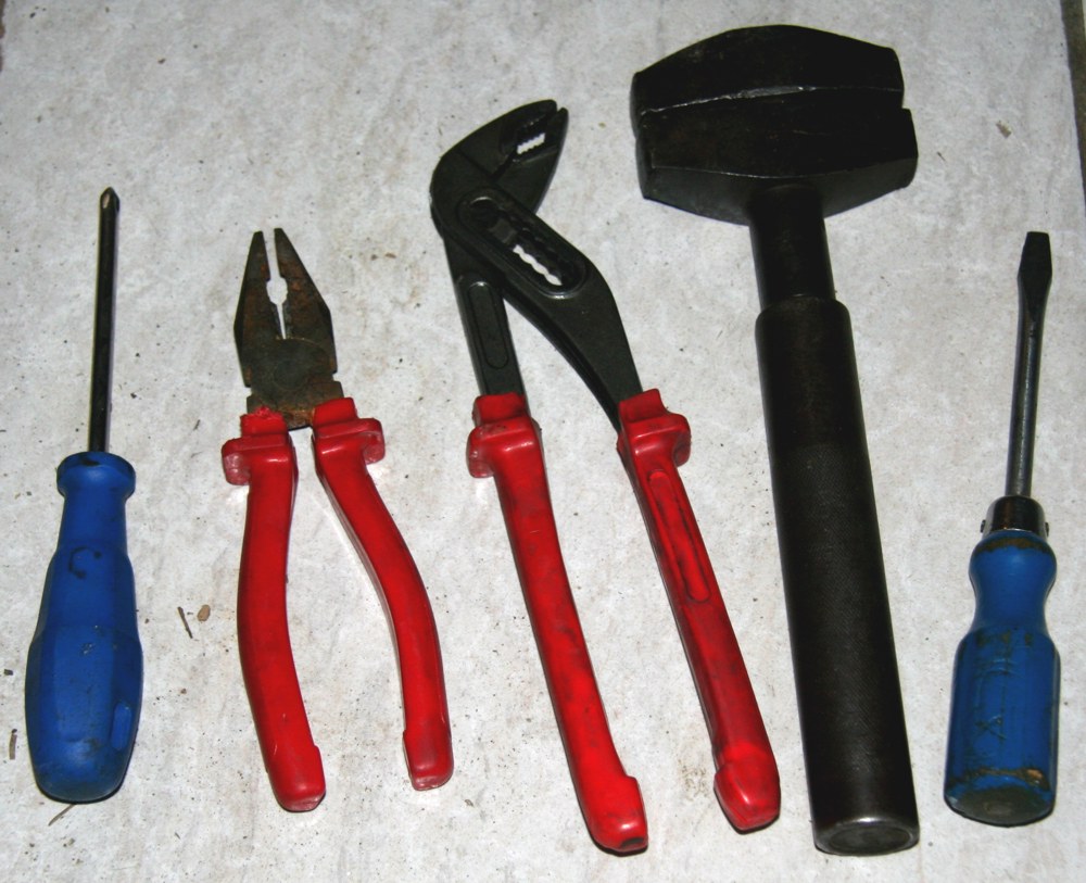 17. Kombiné… azaz kombinált fogó szintén elengedhetetlen a műhelyben. Gyakorlatilag univerzális. Sokszor gyorsabb vele meglazítani egy anyát, mint keresgélni a megfelelő méretű villáskulcsot. Jó ha van belőle… nem is egy, hanem kettő legalább. Vagy a képen mellette látható speciális fogó… a nevét nem tudom, hogy mi, de sokat használom.