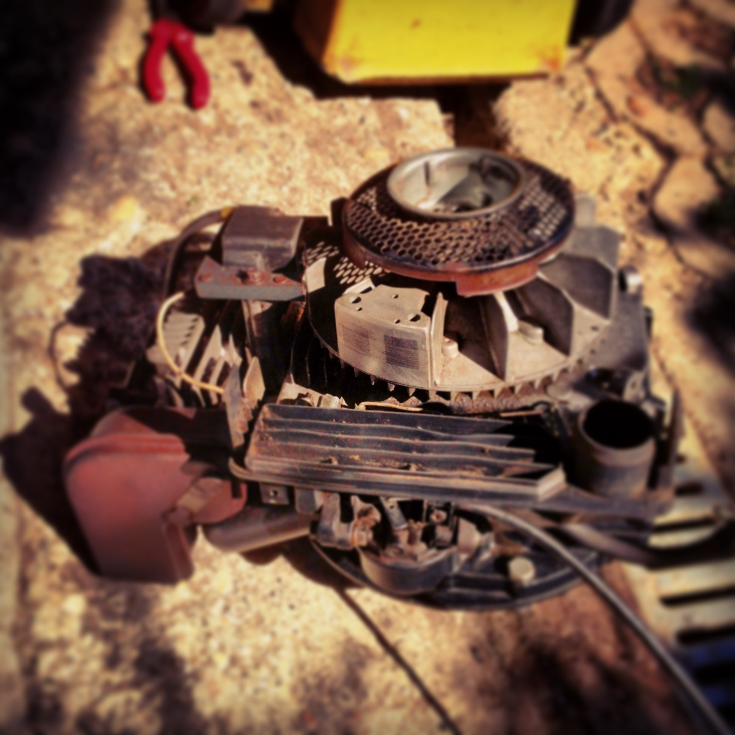Úgy, hogy a TECUMSEH feliratot az édesapámtól megörökölt öreg gépen láttam először. Egész pontosan ez a típusa: TECUMSEH BVS-143-as. Kezdetben egy amerikai cég gyártotta (ők most kompresszorokat gyártanak), aminek a licenszét megvette valami olasz cég (vagy leányvállalata volt) és Európa számára kezdte el gyártani. Német ismerősök használták, aztán nekünk adták. Édesapám leharcolta, én meg nekiestem és felújítottam. Ezt, meg azt megtakarítottam a motoron, aztán beindult. Ezek a gépek ugyanis elnyűhetetlenek. Ha megnézzük a YouTubon ezt a videót, akkor láthatjuk, hogy még a szeméttelepen talált cucc is beindult (csak egy kis benzint fecskendezett bele a srác). Szóval fogtam és megbütyköltem én is. Persze a szoknyáját rozsdátlanítani kellett, itt-ott rápingálni. Aztán pedig beindult (íme a bizonyíték).
