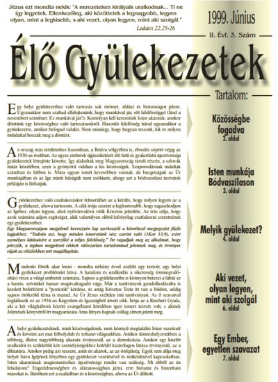 ÉGy X/46 címbeli jelzéssel indítottam ezt a bejegyzés-folyamot, amiben egy újság számaiból bengészek (vagy böngészek). Az Élő Gyülekezetek folyóirat első példányai 1998-ban kerültek az olvasók kezébe (november). A II. évfolyam 3. szám (.pdf formátumban elolvasható itt) 1999. júniusában jelent meg.