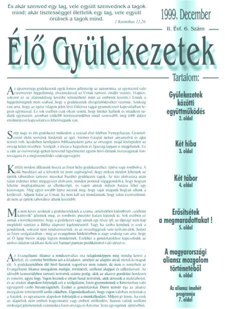 ÉGy X/46 címbeli jelzéssel indítottam ezt a bejegyzés-folyamot, amiben egy újság számaiból bengészek (vagy böngészek). Az Élő Gyülekezetek folyóirat első példányai 1998-ban kerültek az olvasók kezébe (november). Most a II. évfolyam 6. szám cikkeit futottam át, a kiválasztott cikk minden időben aktuális, ma is. A címe: Két tábor, a szerzője pedig Brian Gunning: