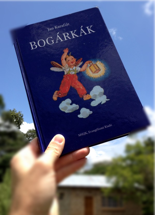 Afrikában rengeteg a rovar (legyünk őszinték, a világon mindenütt). Hangyák milliárdjai vagy trilliárdjai (ha csak egy vonuló army ant sereget nézek, amiben több ezer vagy tízezer van belőlük). Aztán ott vannak a kabócák, amelyek ugyan nem hatalmasak, de a zaj, amit csapnak (akár egy flex-csiszoló), fülsüketítő. A világon mindenütt “muzsikálnak”, de itt (Kalene Hill) különösen hangosak. Szóval, Afrika tele van rovarral, mi mégis hoztunk magunkkal Bogárkákat, vagy hogy pontosabban fogalmazzak “a Bogárkák”-at, egészen pontosan a Bogárkák című könyvet (szegény könyv utazott vagy 12 ezer kilométert!).